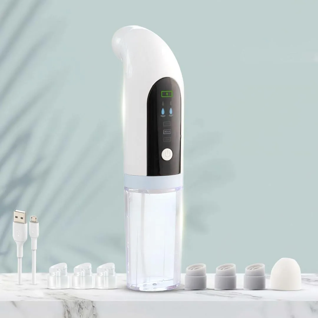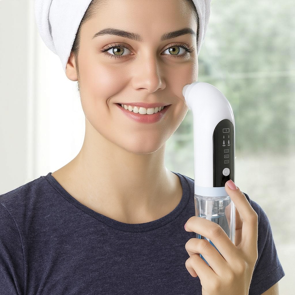 Der integrierte Wassertank ermöglicht eine wasserbasierte Reinigung, bei der Schmutz, Talg und abgestorbene Hautzellen während der Anwendung aufgenommen werden – für ein sauberes, kontrolliertes Pflegeerlebnis.
