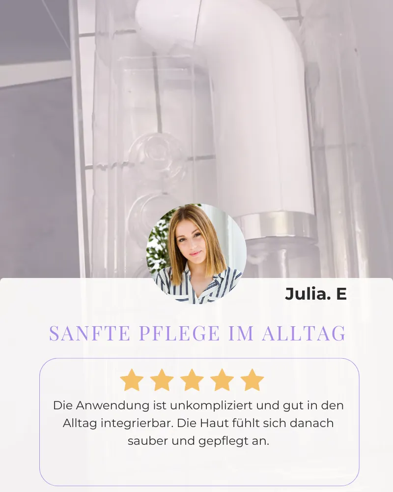 Bestelle jetzt dein Skinovia Pflege-Bundle und erlebe sanfte, wasserbasierte Hautreinigung zu Hause.